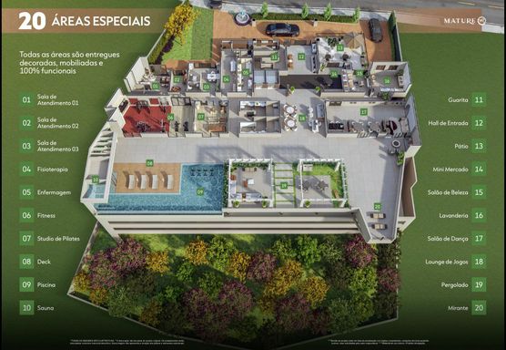 ✔ Área de piscina com sauna;