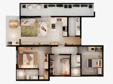✔ 03 quartos sendo 01 suíte;