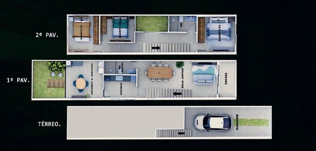 ✔ 03 quartos;